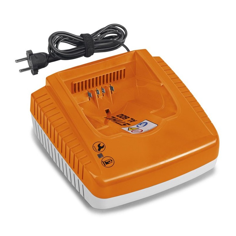 Avec son système de refroidissement, ce chargeur peut charger toutes vos batteries Stihl en un temps record. Sa LED témoigne de la charge et il peut se fixer au mur.