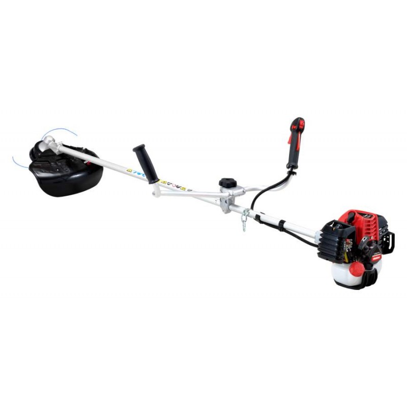 Pour couper l'herbe et les végétaux cette débroussailleuse portable est idéale grâce à son moteur Kawasaki et sa poignée ronde.